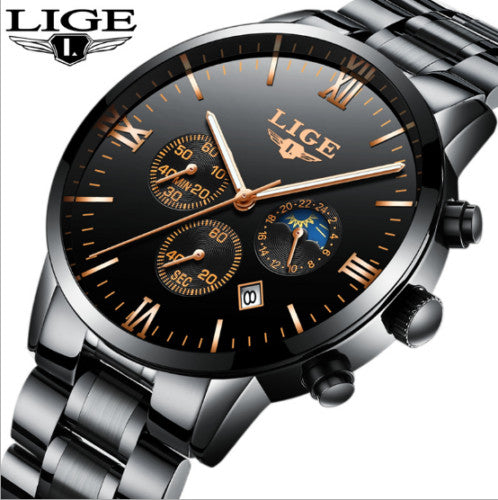 Brand Name: LIGEItem Type: Quartz WatchStyle Fashion & Casual & Sports & Luxury & BusinessFeature: Moon Phase, Water Resistant, Shock Resistant, Stop Watch, Complete Calendar, Auto DateGender: MenMovement: QuartzCase Material: AlloyBand...