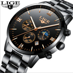 LIGE black Men Business Quartz Watch