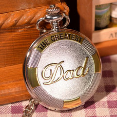 The Greatest Dad Pocket Watch is carefully crafted to perfection. The cover is intricately designed with a dual metal tone pattern and engraved with the message "The Greatest Dad", making it the perfect gift for any occasion. The crystal face and back cover give it an antique feel that any pocket watch lover would enjoy.