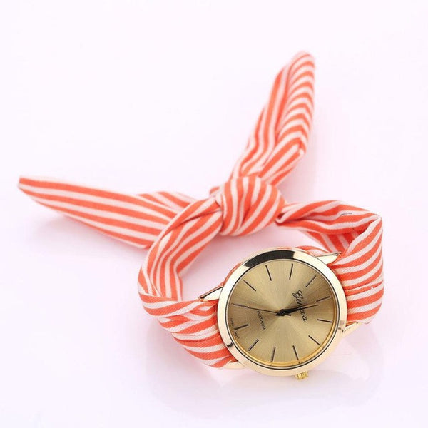 Quartz Stripe Fabric Cloth Bracelet Wristwatch For Women