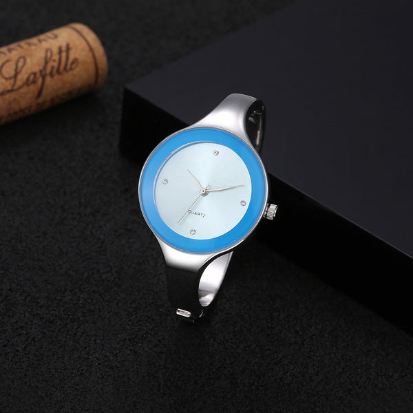Features Watches categories:Women Watch style:Fashion casual luxury bracelet Shape of the dial:Round Movement type:Quartz  Display type:Pointer Dial color:Black,white,red,pink,blue Band materal:Stainless steel Clasp type:Pin bracelet band lenght: 19.5cm Dial diameter: 3.3cm Dial...