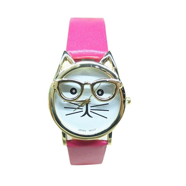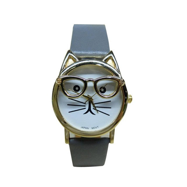 Cute Cat Leather Strap Analog Quartz Wrist Watch