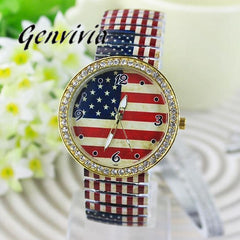 GENVIVIA Fashion Flag Pattern Diamond Wrist Watch